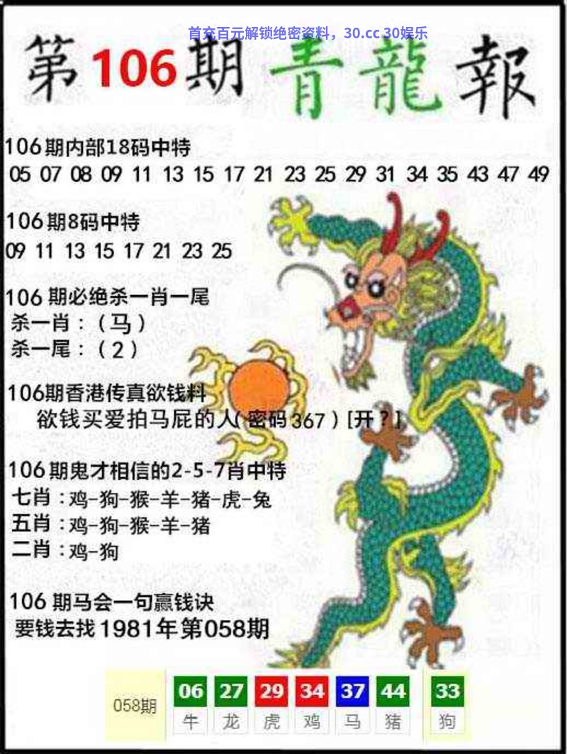 109期:正版资料【正版青龙报】免费公开!